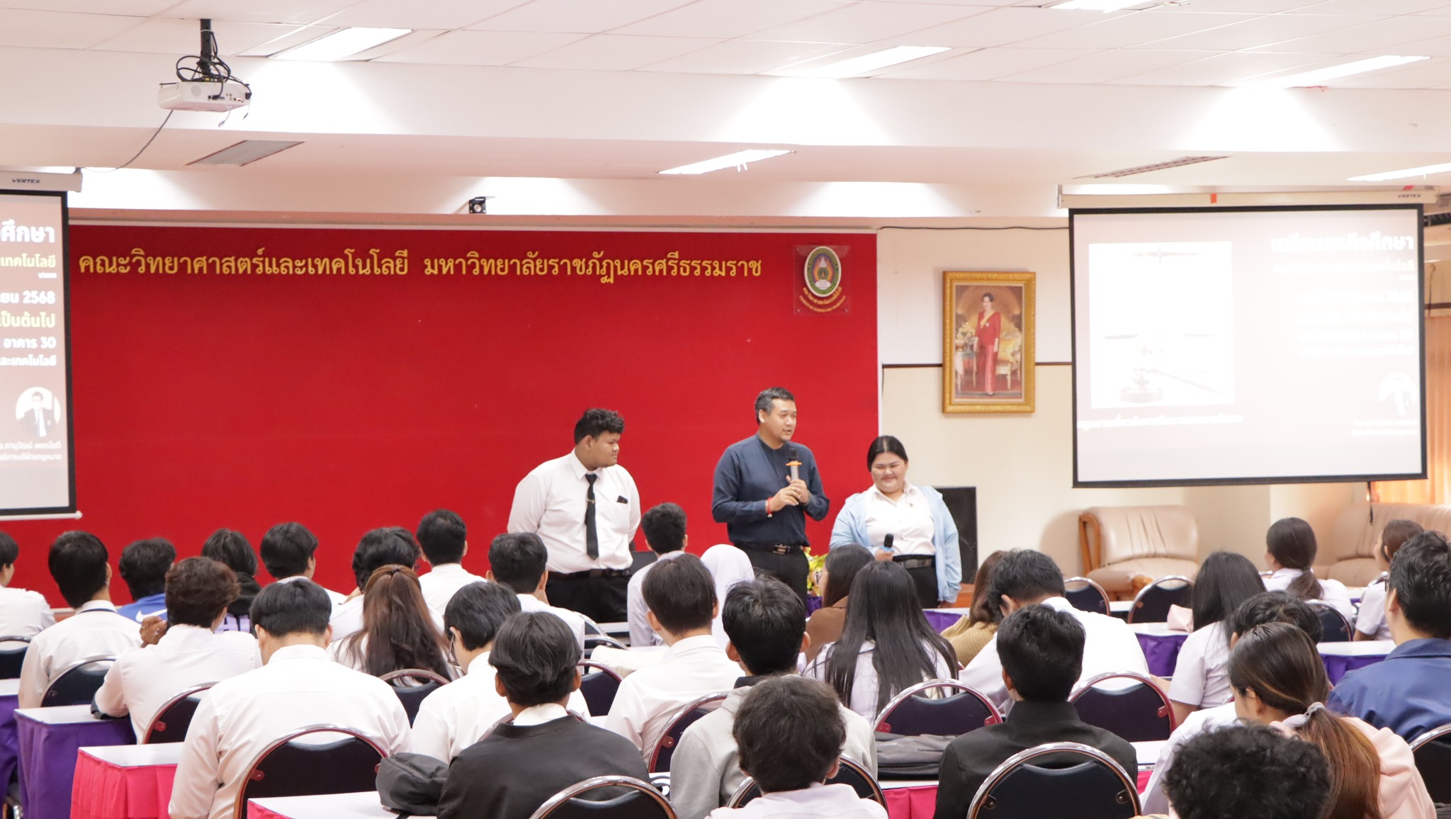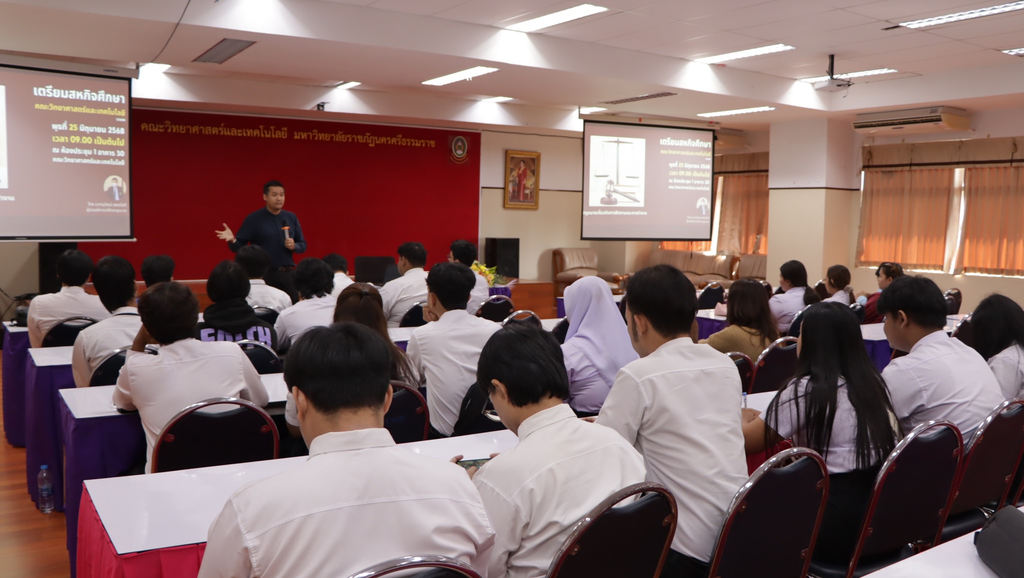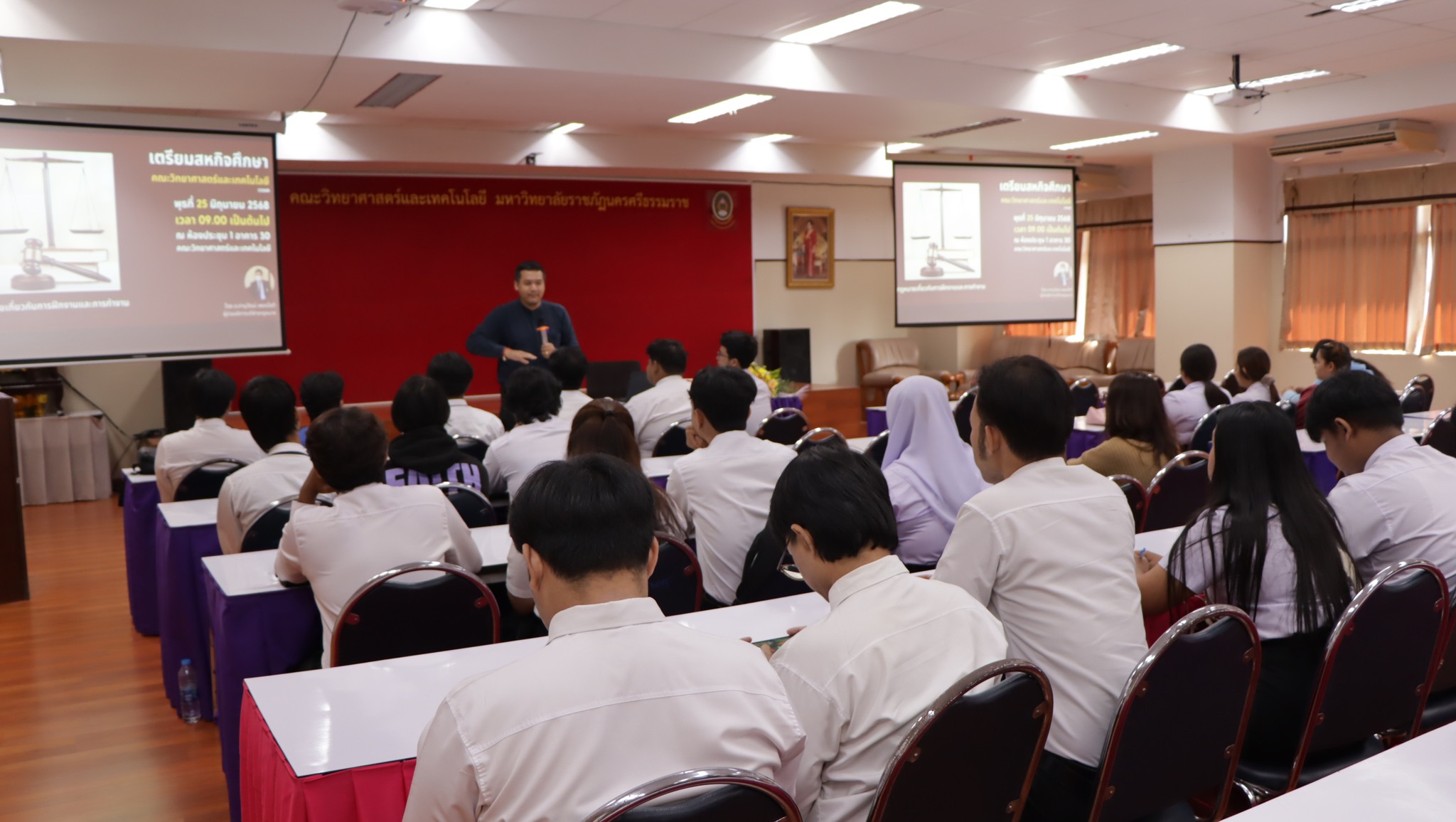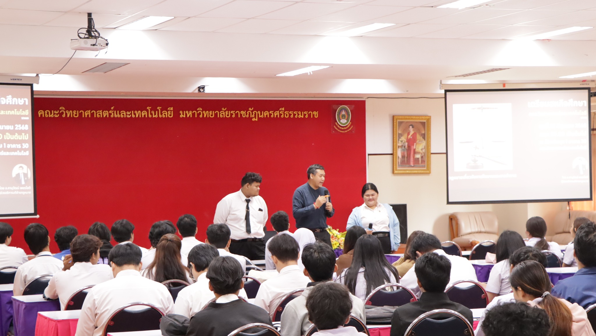 วันพุธที่ 25 มิถุนายน พ.ศ. 2568 คณะวิทยาศาสตร์และเทคโนโลยี มหาวิทยาลัยราชภัฏนครศรีธรรมราช จัดกิจกรรมเตรียมฝึกสหกิจศึกษา ประจำปีการศึกษา 1-2568 ครั้งที่ 2 ในหัวข้อกฎหมายเกี่ยวกับการฝึกงานและการทำงาน โดยได้รับเกียรติจาก อาจารย์ภานุวัฒน์ เพชรโชติ จากสาขาวิชานิติศาสตร์ คณะมนุษยศาสตร์และสังคมศาสตร์ เป็นวิทยากรในเรื่องดังกล่าว กิจกรรมเตรียมฝึกสหกิจศึกษาเป็นโครงการดี ๆ ที่คณะฯ ได้ดำเนินการมาอย่างต่อเนื่อง เพื่อพัฒนาคุณภาพนักศึกษาให้มีความพร้อมสำหรับการออกไปฝึกประสบการณ์ และเสริมสร้างความมั่นใจให้นักศึกษาสามารถออกไปฝึกประสบการณ์สหกิจศึกษาได้อย่างมีประสิทธิภาพ