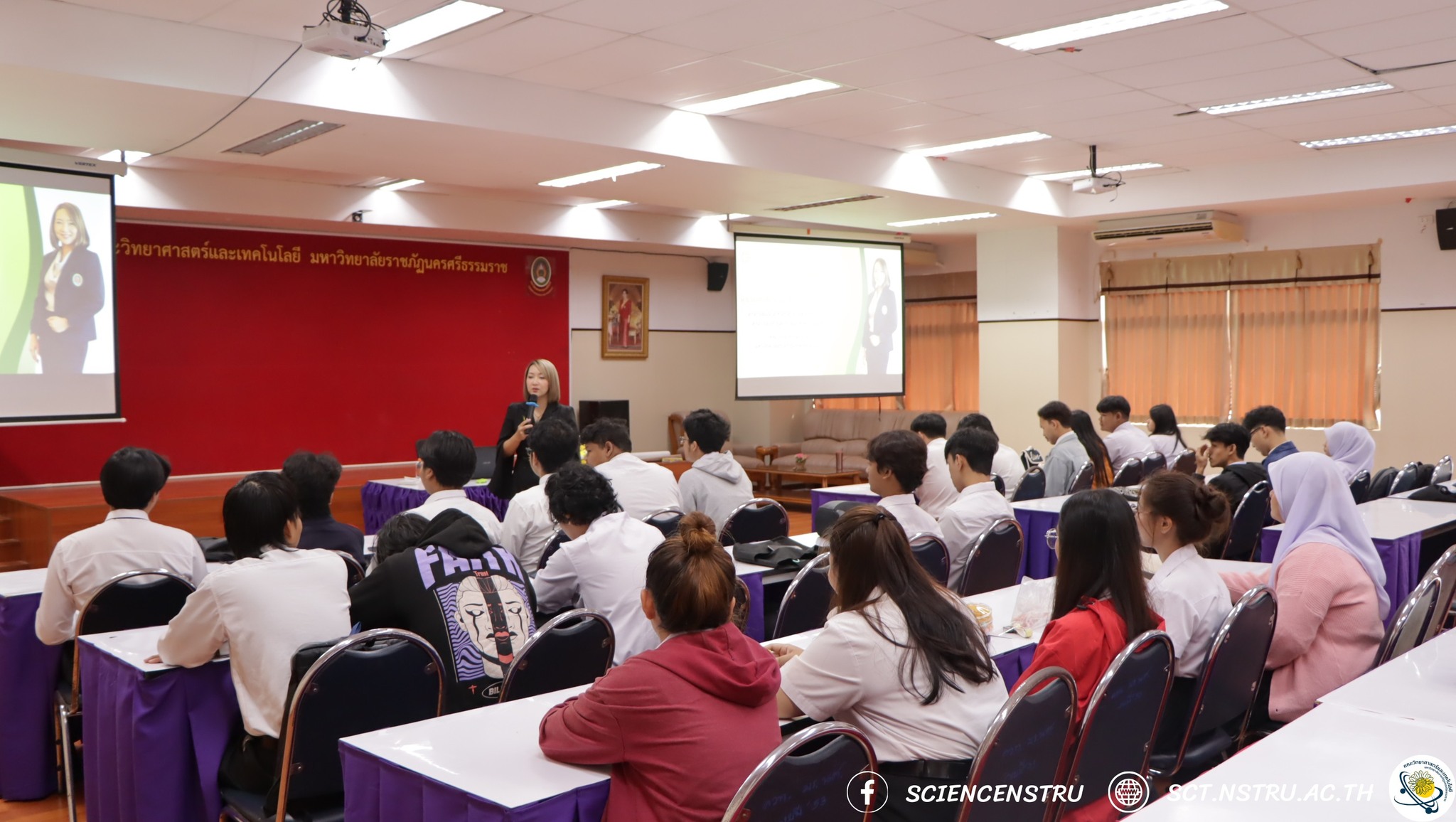 วันพุธที่ 9 กรกฎาคม พ.ศ. 2568 คณะวิทยาศาสตร์และเทคโนโลยี มหาวิทยาลัยราชภัฏนครศรีธรรมราช จัดกิจกรรมเตรียมฝึกสหกิจศึกษา ปีการศึกษา 1/2568 ในหัวข้อ First Impression Matters:เคล็ดลับลุคปังสำหรับนักศึกษาฝึกงาน โดยได้รับเกียรติจาก ผู้ช่วยศาสตรจารย์ศิรินันท์ พันธรักษ์ อาจารย์สาขาวิชาการจัดการอุตสาหกรรมบริการ คณะวิทยาการจัดการ เป็นวิทยากรในการบรรยายดังกล่าว กิจกรรมเตรียมฝึกสหกิจศึกษาเป็นโครงการดี ๆ ที่คณะวิทยาศาสตร์และเทคโนโลยีได้ดำเนินการมาอย่างต่อเนื่อง เพื่อพัฒนาคุณภาพนักศึกษาให้มีความพร้อมสำหรับการออกไปฝึกประสบการณ์ และเสริมสร้างความมั่นใจให้นักศึกษาสามารถออกไปฝึกประสบการณ์สหกิจศึกษาได้อย่างมีประสิทธิภาพ จึงทำให้การจัดกิจกรรมในครั้งนี้นักศึกษาได้รับความรู้เป็นอย่างมาก