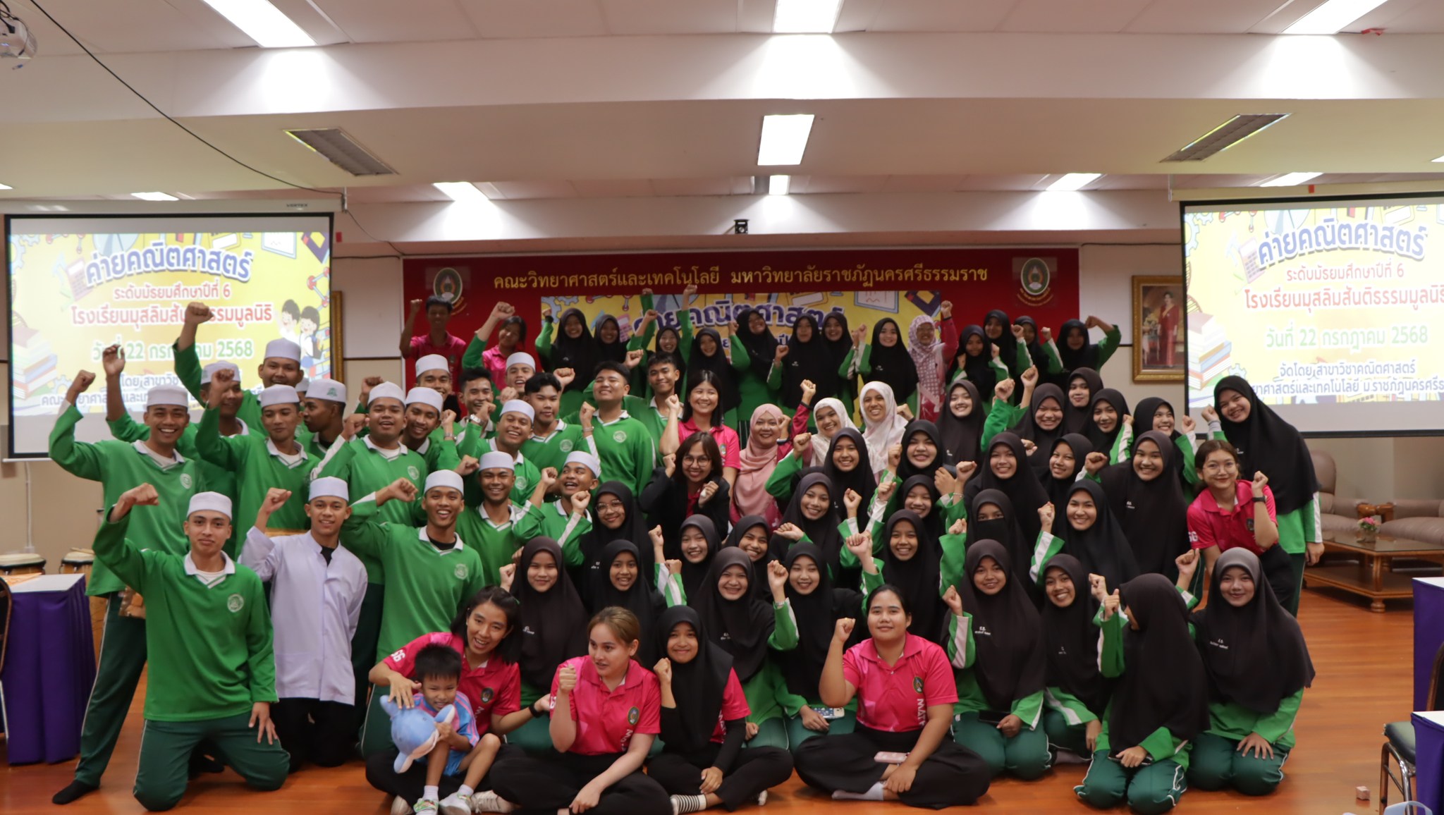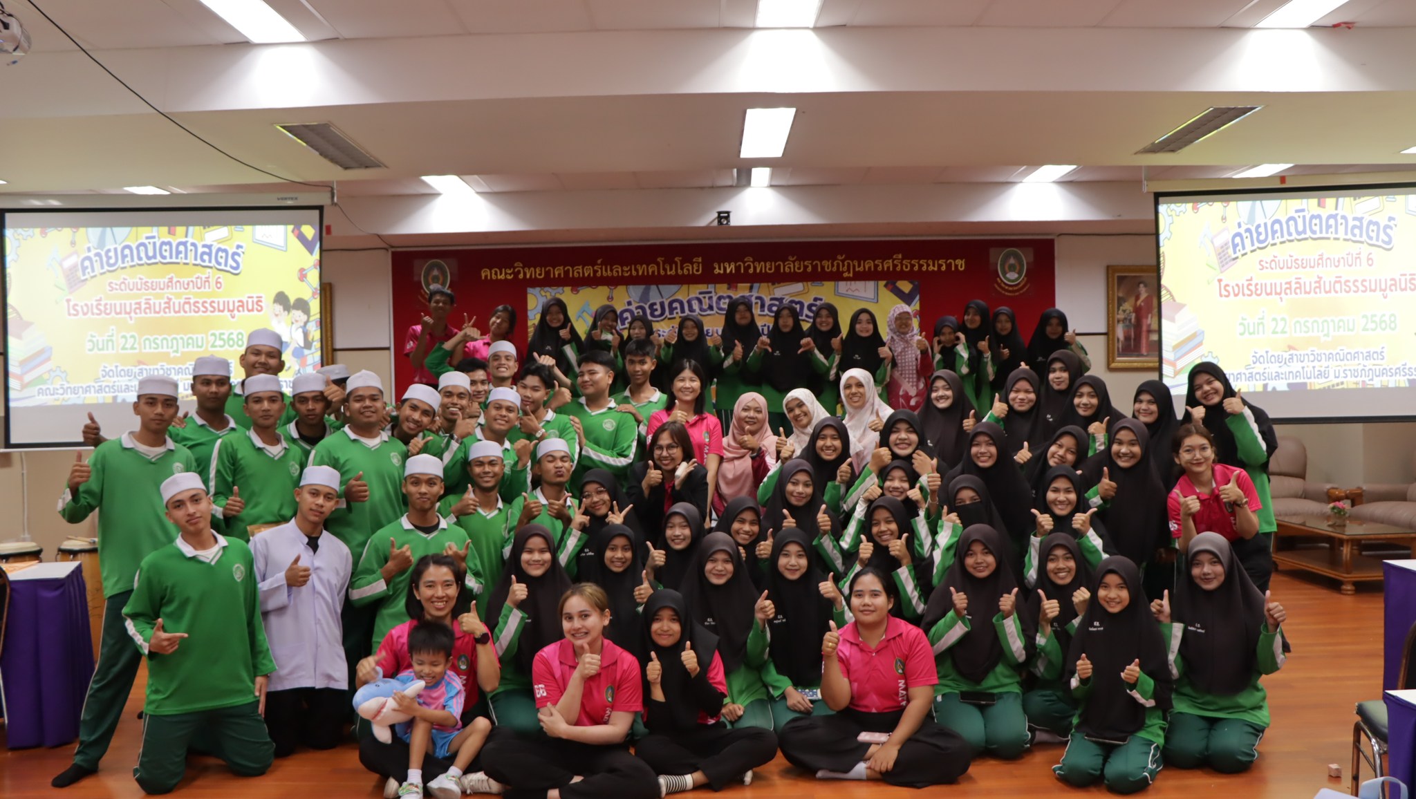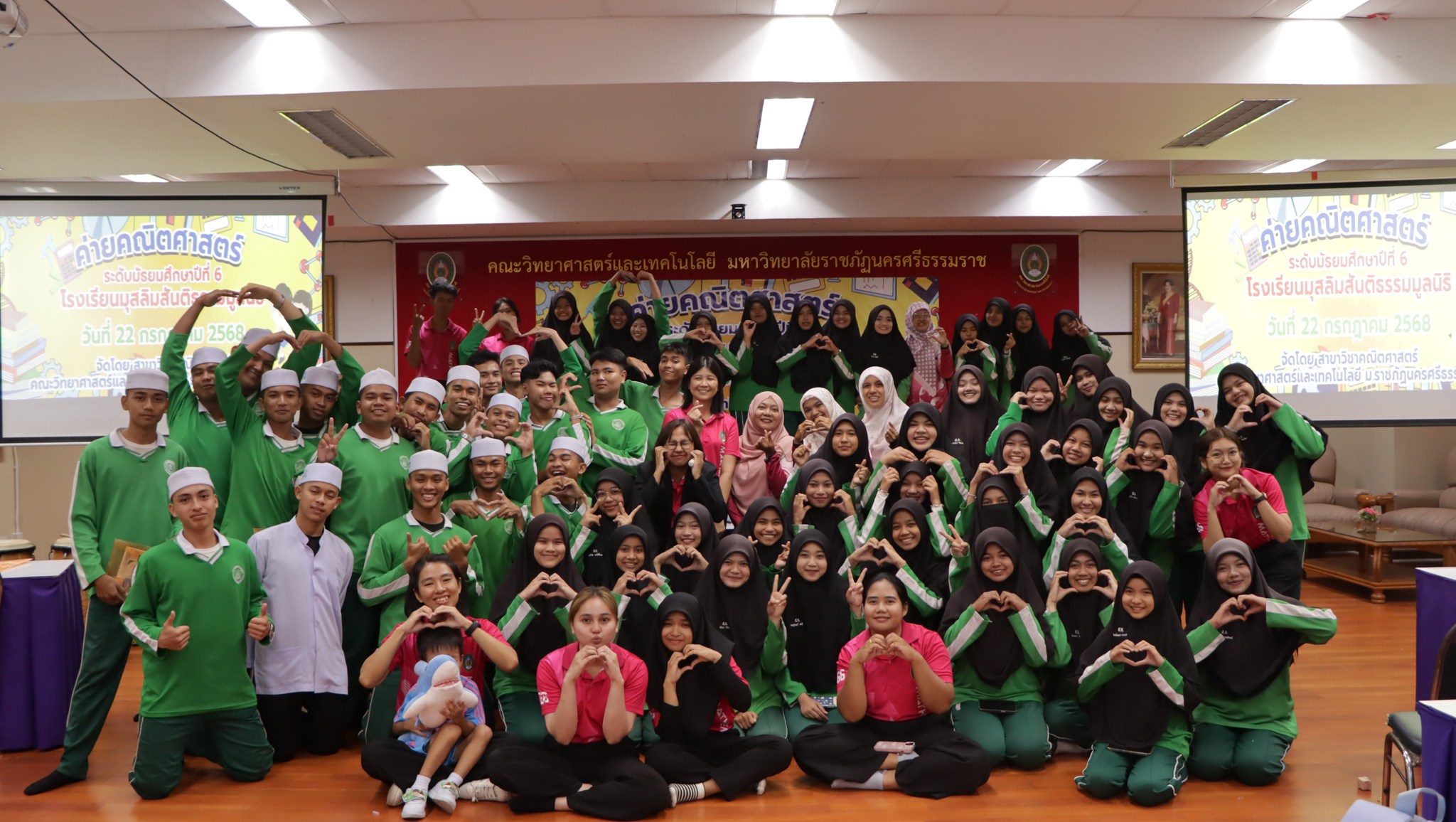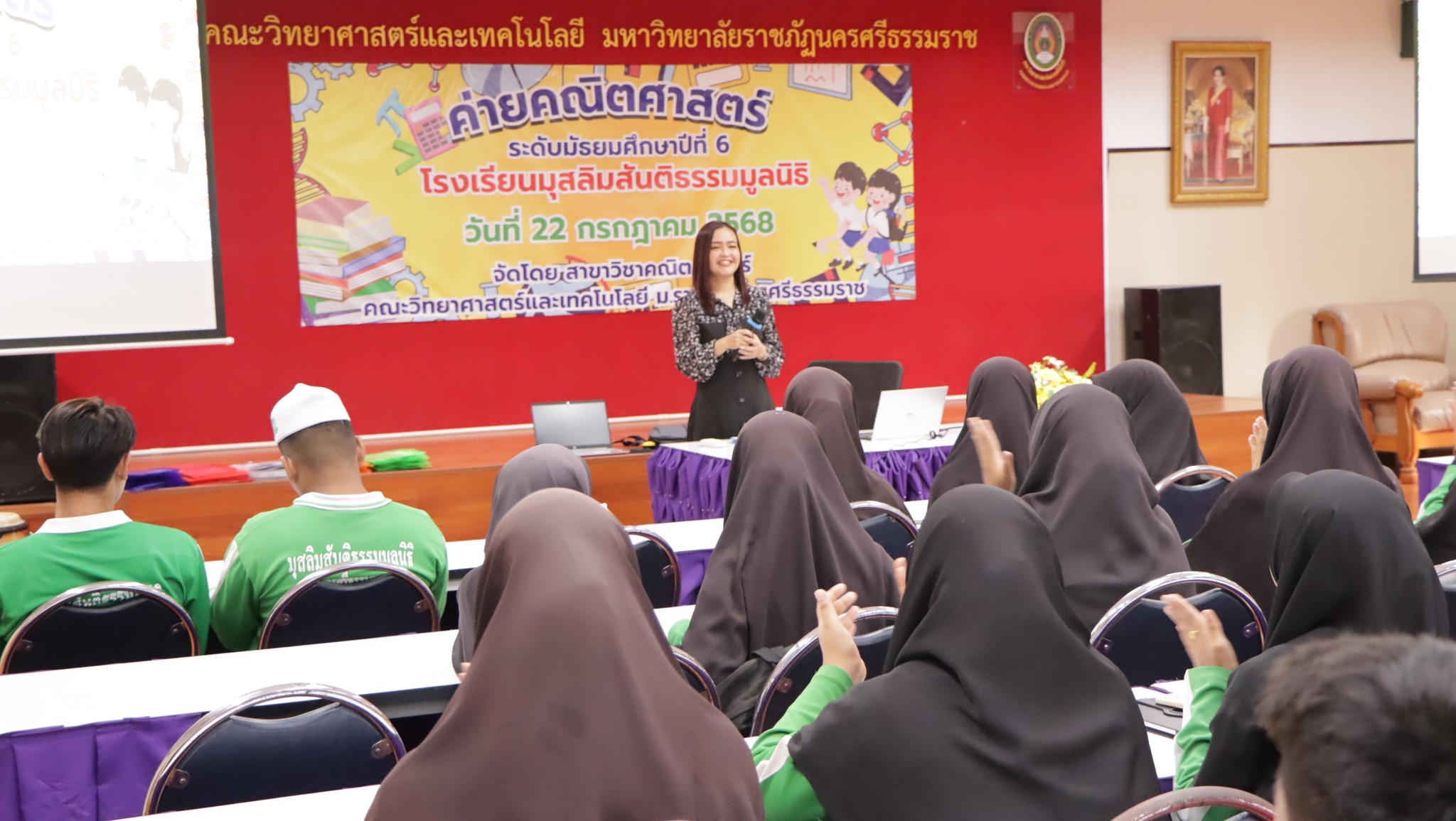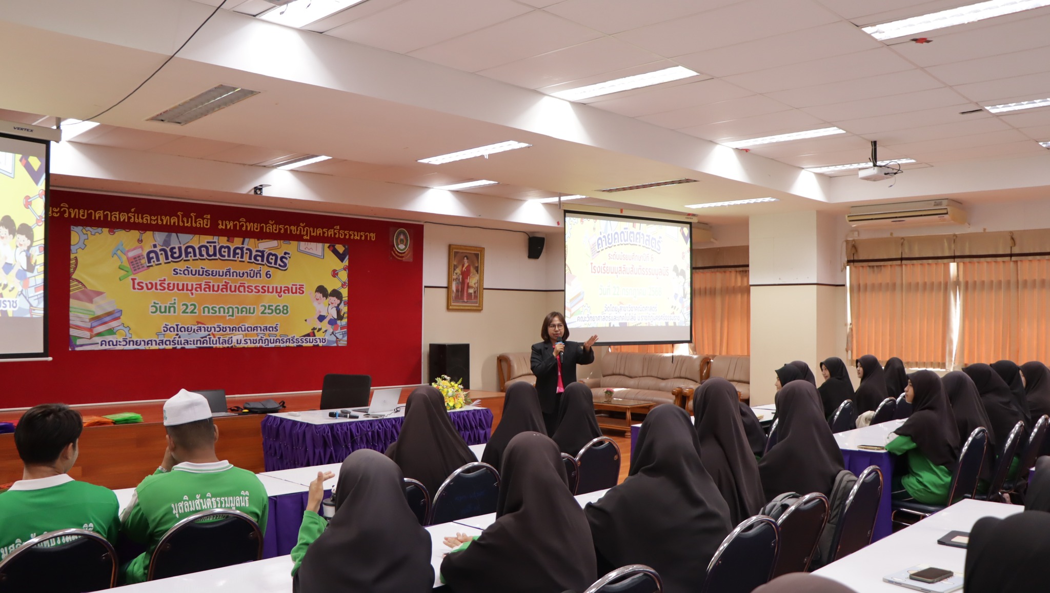 วันอังคารที่ 22 กรกฎาคม 2568 คณะวิทยาศาสตร์และเทคโนโลยี มหาวิทยาลัยราชภัฏนครศรีธรรมราช จัดค่ายคณิตศาสตร์ โรงเรียนมุสลิมสันติธรรมมูลนิธิ โดยมีวัตถุประสงค์เพื่อส่งเสริมการเรียนรู้และพัฒนาทักษะด้านคณิตศาสตร์ให้กับนักเรียนในระดับชั้นมัธยมศึกษา ตลอดจนเสริมสร้างเจตคติที่ดีต่อวิชาคณิตศาสตร์ผ่านกระบวนการเรียนรู้เชิงสร้างสรรค์ ณ อาคาร 30
