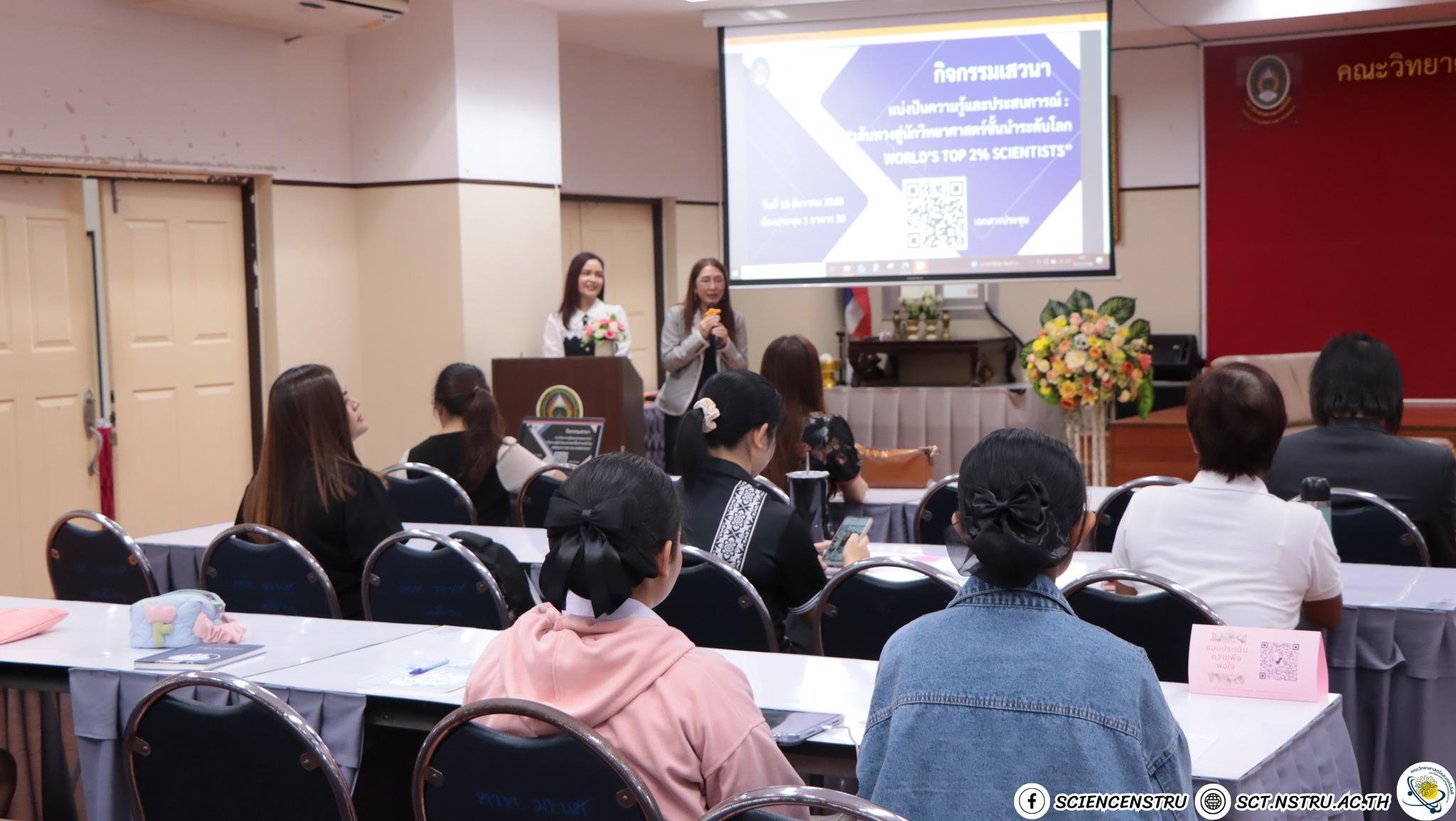 วันจันทร์ที่ 15 ธันวาคม 2568 คณะวิทยาศาสตร์และเทคโนโลยี มหาวิทยาลัยราชภัฏนครศรีธรรมราช จัดกิจกรรมเสวนา “แบ่งปันความรู้และประสบการณ์ เส้นทางสู่นักวิทยาศาสตร์ชั้นนำระดับโลก (World’s Top 2% Scientists)” โดยได้รับเกียรติจาก ศ.ดร.สรรพสิทธิ์ กล่อมเกล้า จากมหาวิทยาลัยทักษิณ และ รศ.ดร.ประวิทย์ เนื่องมัจฉา จากมหาวิทยาลัยราชภัฏนครศรีธรรมราช เป็นวิทยากรถ่ายทอดประสบการณ์ เส้นทางการทำงานวิจัย แนวคิดการพัฒนาผลงานทางวิชาการ และการก้าวสู่การเป็นนักวิทยาศาสตร์ชั้นนำระดับโลก (World’s Top 2% Scientists) เพื่อส่งเสริมศักยภาพด้านการวิจัยและวิชาการ ตลอดจนสร้างแรงบันดาลใจให้กับคณาจารย์และนักศึกษาในการพัฒนาตนเองสู่ความเป็นเลิศทางวิทยาศาสตร์และเทคโนโลยีอย่างยั่งยืน ณ ห้องประชุม 1 อาคาร 30