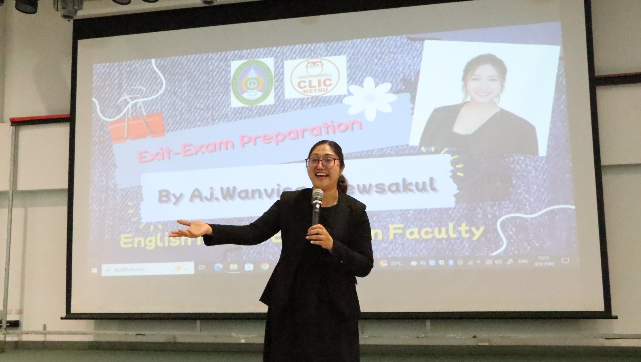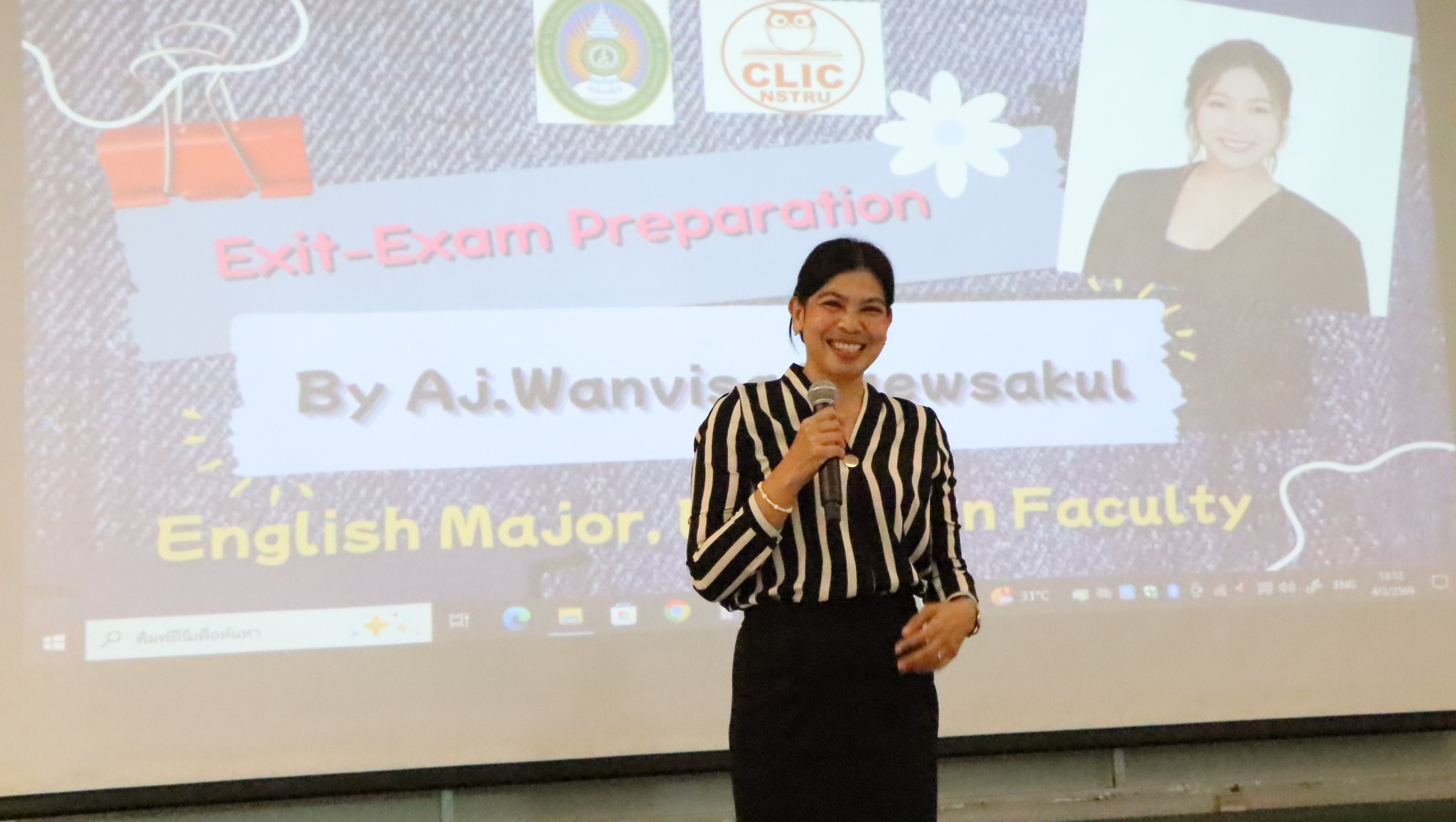 วันพุธที่ 4 มีนาคม พ.ศ. 2569 คณะวิทยาศาสตร์และเทคโนโลยี มหาวิทยาลัยราชภัฏนครศรีธรรมราช จัดกิจกรรมส่งเสริมความรู้และพัฒนาทักษะด้านภาษาอังกฤษตามมาตรฐาน CEFR เพื่อยกระดับสมรรถนะทางภาษาอังกฤษของนักศึกษาให้สอดคล้องกับมาตรฐานสากล ในการนี้ ได้รับเกียรติจาก อาจารย์วันวิสา แก้วสกุล คณะครุศาสตร์ เป็นวิทยากรถ่ายทอดความรู้ เทคนิคการพัฒนาทักษะภาษาอังกฤษทั้งด้านการฟัง พูด อ่าน และเขียน ตลอดจนแนวทางการเตรียมความพร้อมในการทดสอบตามกรอบมาตรฐาน CEFR กิจกรรมดังกล่าวจัดขึ้น ณ ห้องประชุมภักดีดำรงฤทธิ์ ชั้น 2