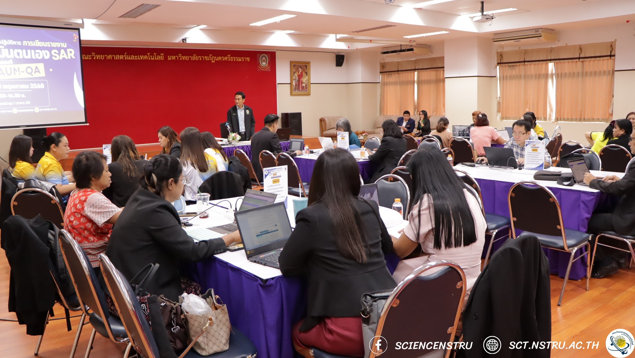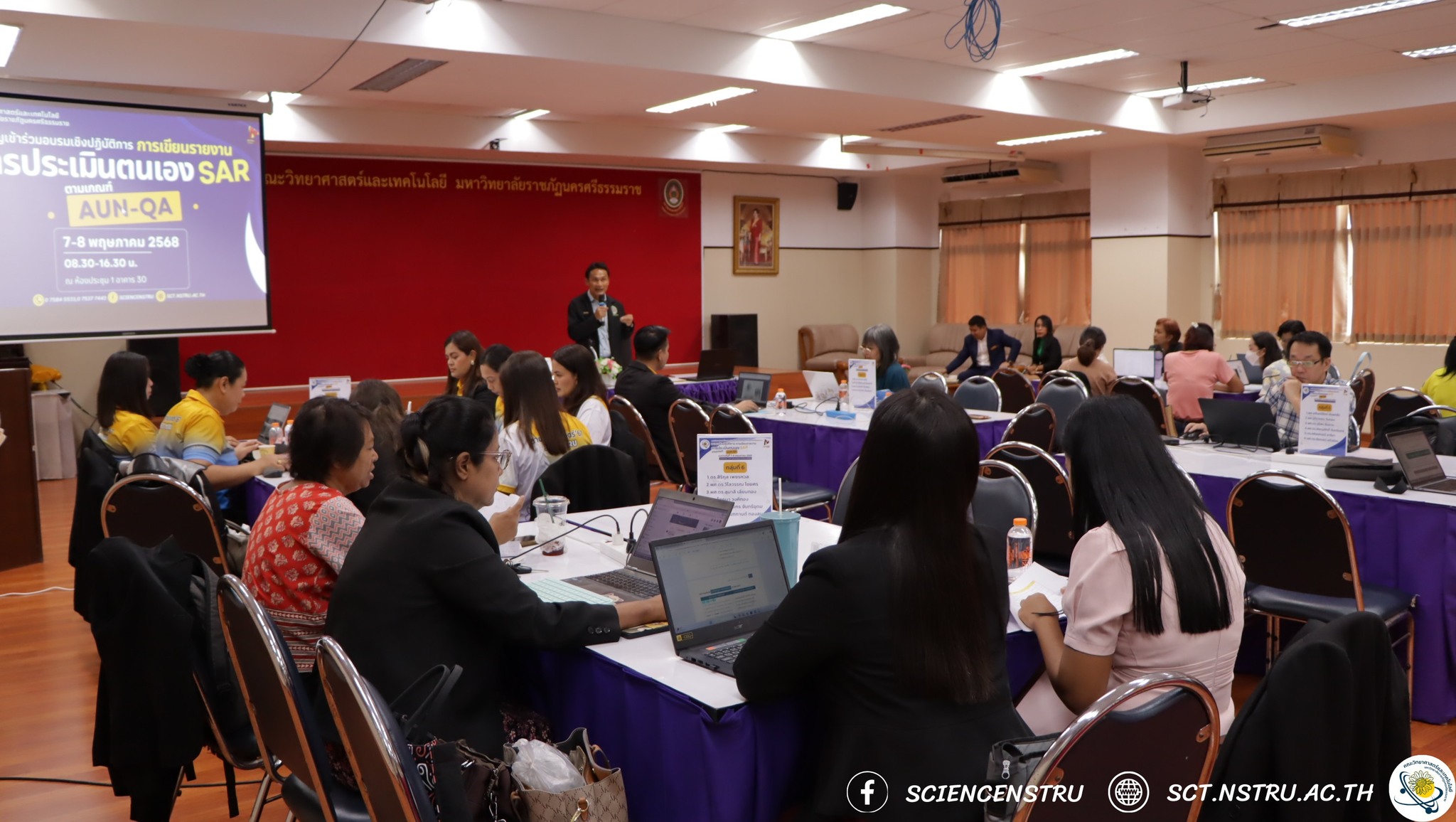 ระหว่างวันที่ 7-8 พฤษภาคม พ.ศ. 2568 คณะวิทยาศาสตร์และเทคโนโลยี มหาวิทยาลัยราชภัฏนครศรีธรรมราช จัดกิจกรรมอบรมเชิงปฏิบัติการ เรื่อง “การเขียนรายงานการประเมินตนเอง (Self-Assessment Report: SAR) ตามเกณฑ์ AUN-QA” ณ ห้องประชุม 1 อาคาร 30 โดยมีวัตถุประสงค์เพื่อเสริมสร้างความรู้ ความเข้าใจ และแนวทางการจัดทำรายงาน SAR ให้เป็นไปตามมาตรฐานของเครือข่ายมหาวิทยาลัยอาเซียน (ASEAN University Network Quality Assurance: AUN-QA) ในการนี้ ได้รับเกียรติจากผู้ช่วยศาสตราจารย์สุรศักดิ์ แก้วอ่อน รองอธิการบดีมหาวิทยาลัยราชภัฏนครศรีธรรมราช เป็นประธานในพิธีเปิด พร้อมกล่าวถึงความสำคัญของการประกันคุณภาพการศึกษาในระดับอุดมศึกษา และได้รับเกียรติจากอาจารย์ศุภชัย ดำคำ ผู้ช่วยอธิการบดีฝ่ายประกันคุณภาพการศึกษา มหาวิทยาลัยราชภัฏสุราษฎร์ธานี เป็นวิทยากรบรรยายและให้คำแนะนำเชิงลึกเกี่ยวกับการจัดทำรายงาน SAR ตามกรอบ AUN-QA อย่างถูกต้องและครบถ้วน