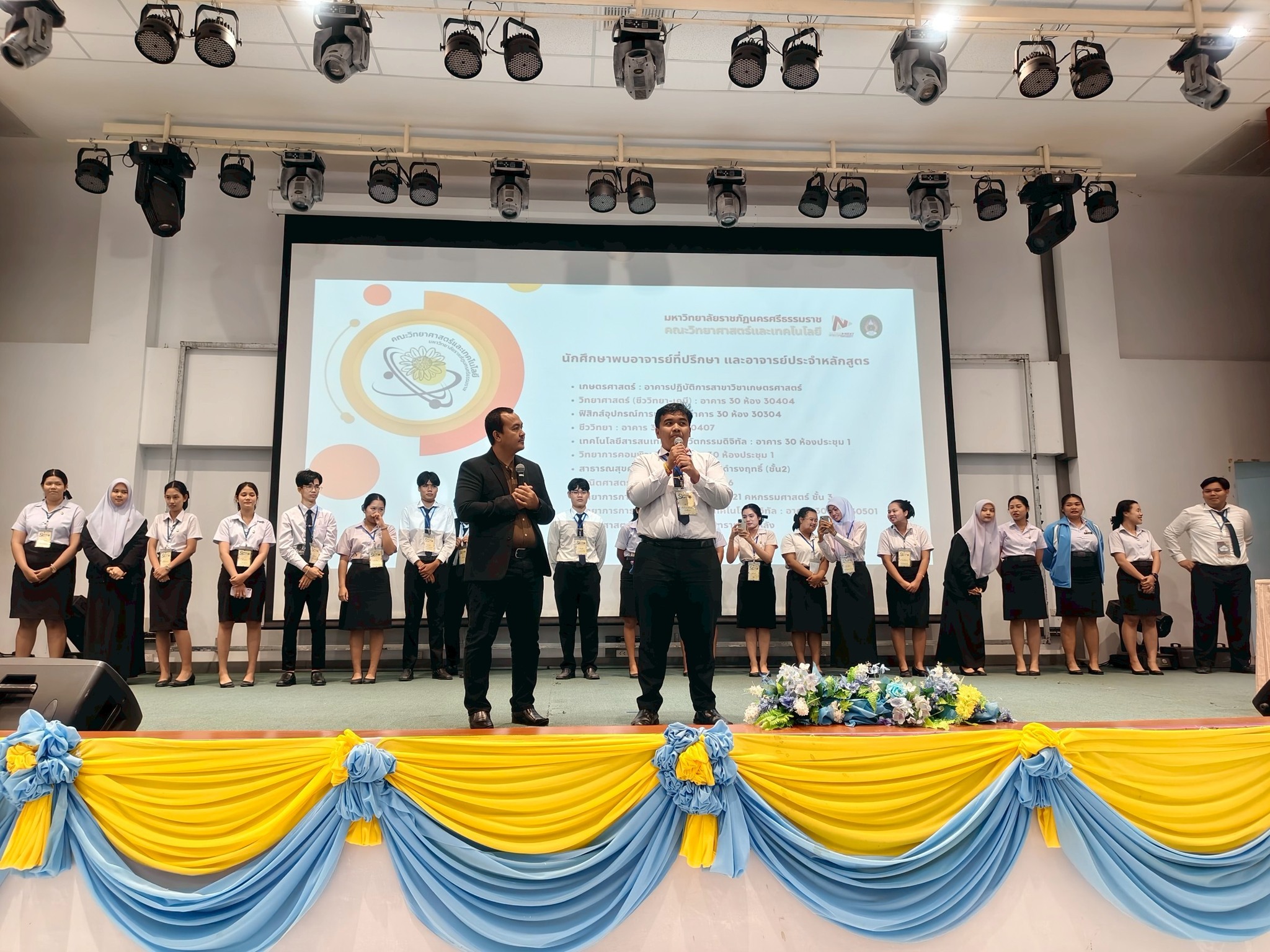 คณะวิทยาศาสตร์และเทคโนโลยี มหาวิทยาลัยราชภัฏนครศรีธรรมราช ได้จัดกิจกรรมปฐมนิเทศนักศึกษา ประจำปีการศึกษา 2568 เพื่อเตรียมความพร้อมให้กับนักศึกษาใหม่ก่อนเข้าสู่ชีวิตในรั้วมหาวิทยาลัย โดยภายในกิจกรรมได้รับเกียรติจาก ผศ.สุรศักดิ์ แก้วอ่อน รองอธิการบดีรักษาราชการแทนคณบดี ผู้บริหาร คณาจารย์ และบุคลากรของคณะฯ เข้าร่วมแนะนำตัว พบปะพูดคุยอย่างเป็นกันเอง เพื่อสร้างความอบอุ่นและสร้างความมั่นใจให้แก่นักศึกษาใหม่ กิจกรรมภายในงานประกอบด้วย การแนะนำการใช้งานอีเมลของมหาวิทยาลัย การชี้แจงเกี่ยวกับการสอบประมวลความรู้ด้านคอมพิวเตอร์และภาษาอังกฤษ การแนะนำรูปแบบการเรียนการสอนในระดับอุดมศึกษา การแนะนำวิธีการปรับตัวและการใช้ชีวิตภายในมหาวิทยาลัยอย่างมีความสุขและประสบความสำเร็จ กิจกรรมในครั้งนี้นับเป็นจุดเริ่มต้นที่ดีในการสร้างแรงบันดาลใจ และเตรียมความพร้อมให้กับนักศึกษาใหม่ในการก้าวสู่การเรียนรู้ระดับอุดมศึกษาอย่างมั่นใจและมีประสิทธิภาพ