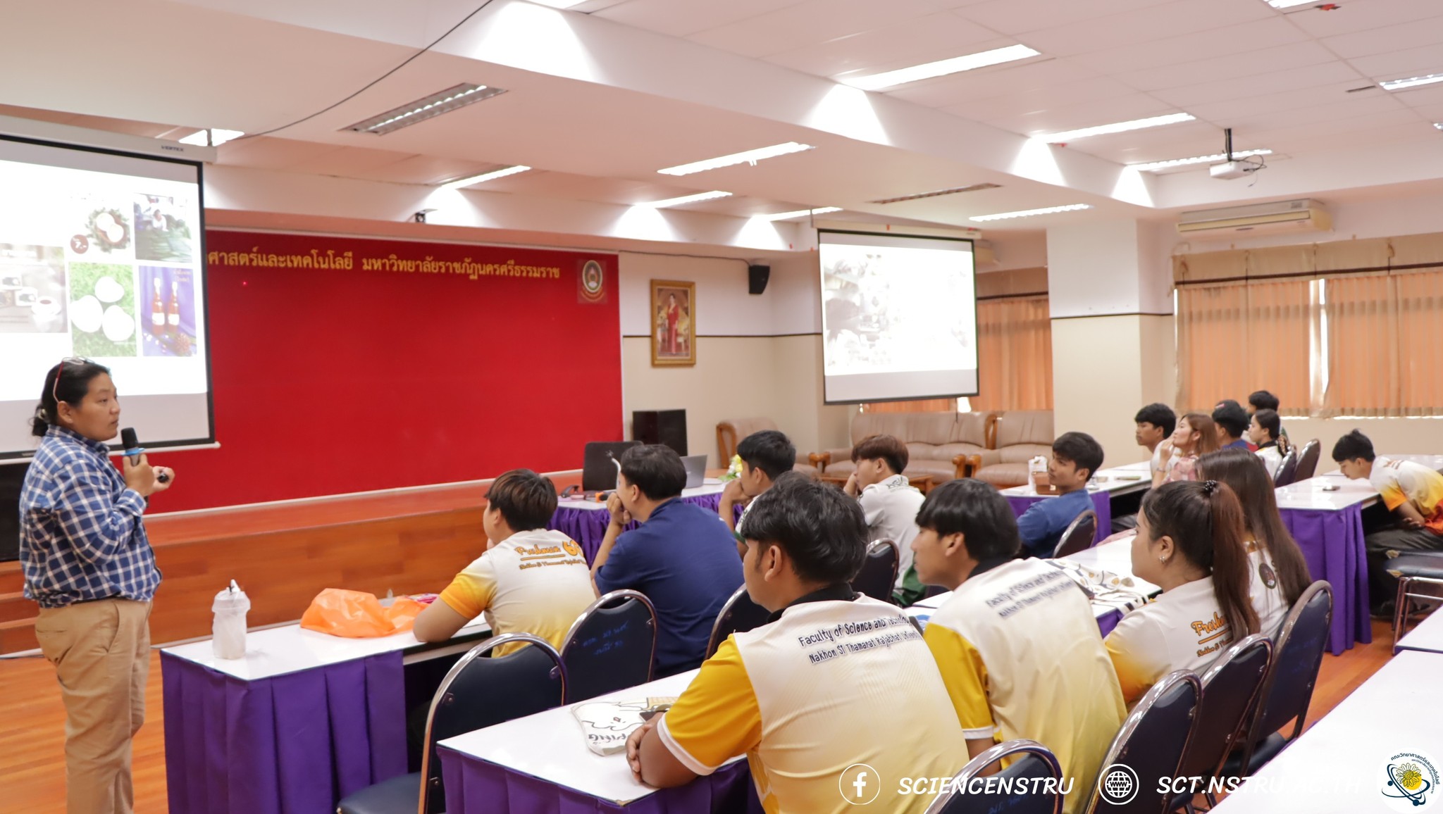 วันพฤหัสบดีที่ 12 มิถุนายน 2568 คณะวิทยาศาสตร์และเทคโนโลยี มหาวิทยาลัยราชภัฏนครศรีธรรมราช จัดกิจกรรมอบรมเชิงปฏิบัติการหัวข้อ “สร้างแหล่งเรียนรู้และตัวอย่างพืชในท้องถิ่น จังหวัดนครศรีธรรมราช” ณ ห้องประชุม 1 อาคาร 30 เพื่อพัฒนาศักยภาพนักศึกษาและบุคลากรรู้จักพืชท้องถิ่น และวิธีการอนุรักษ์พืชท้องถิ่น รวมทั้งการใช้ภูมิปัญญาท้องถิ่น และทุนทางสังคม ทุนทางทรัพยากรธรรมชาติ เพื่อให้เกิดองค์ความรู้ที่ทรงคุณค่าสู่การสร้างสังคม ซึ่งเป็นการบูรณาการพันธกิจด้านบริการวิชาการกับการเรียนการสอนอย่างเป็นรูปธรรม กิจกรรมในครั้งนี้มีวัตถุประสงค์เพื่อสร้างแหล่งเรียนรู้และตัวอย่างพืชในท้องถิ่น จังหวัดนครศรีธรรมราช รวมถึงการบูรณาการงานบริการวิชาการกับพันธะกิจด้านการเรียนการสอนของนักศึกษา โดยมี รองศาสตราจารย์ ดร.สุภาวดี ถาวโร รองคณบดีฝ่ายวิจัยและบริการวิชาการ ให้เกียรติเป็นประธานในพิธีเปิดกิจกรรม