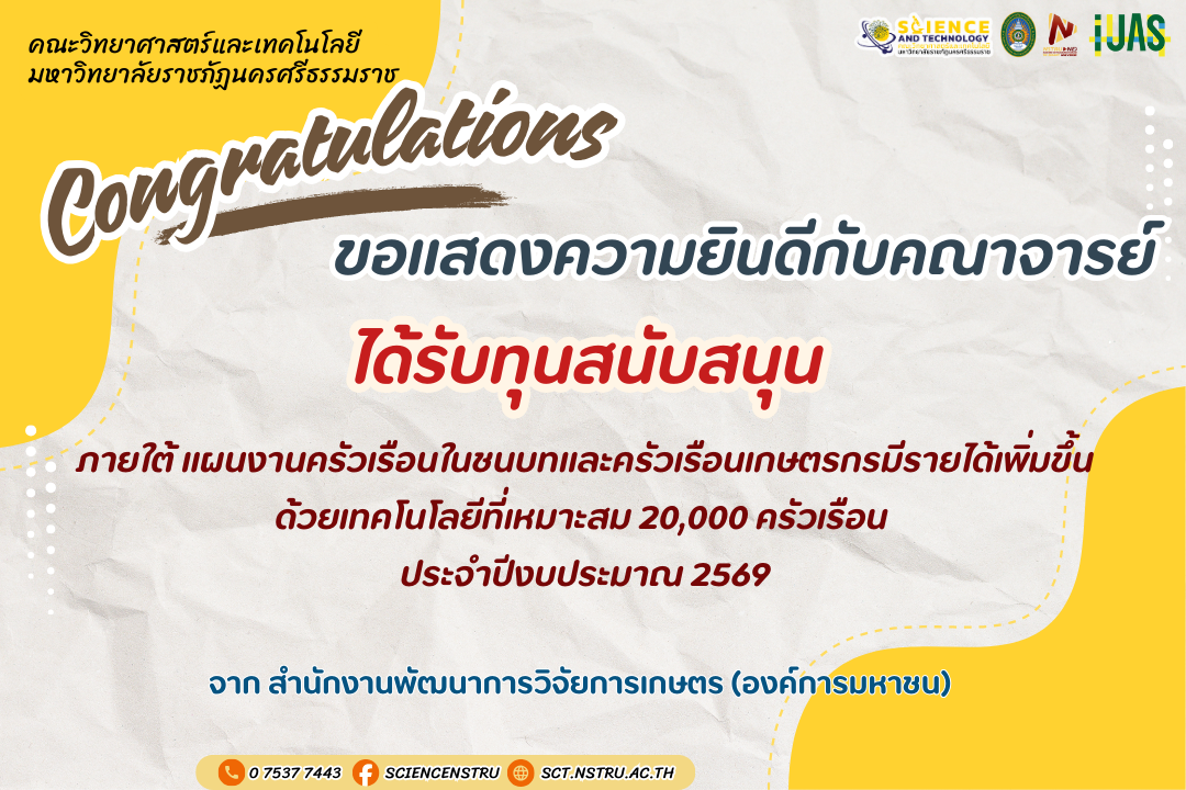 ขอแสดงความยินดีกับคณาจารย์ได้รับทุนสนับสนุนโครงการวิจัย
