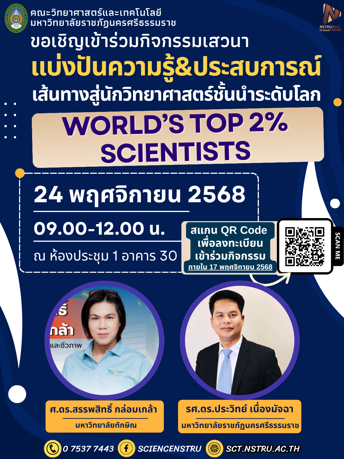 ขอเชิญเข้าร่วมกิจกรรมเสวนาแบ่งปันความรู้และประสบการณ์เส้นทางสู่นักวิทยาศาสตร์ชั้นนำระดับโลก