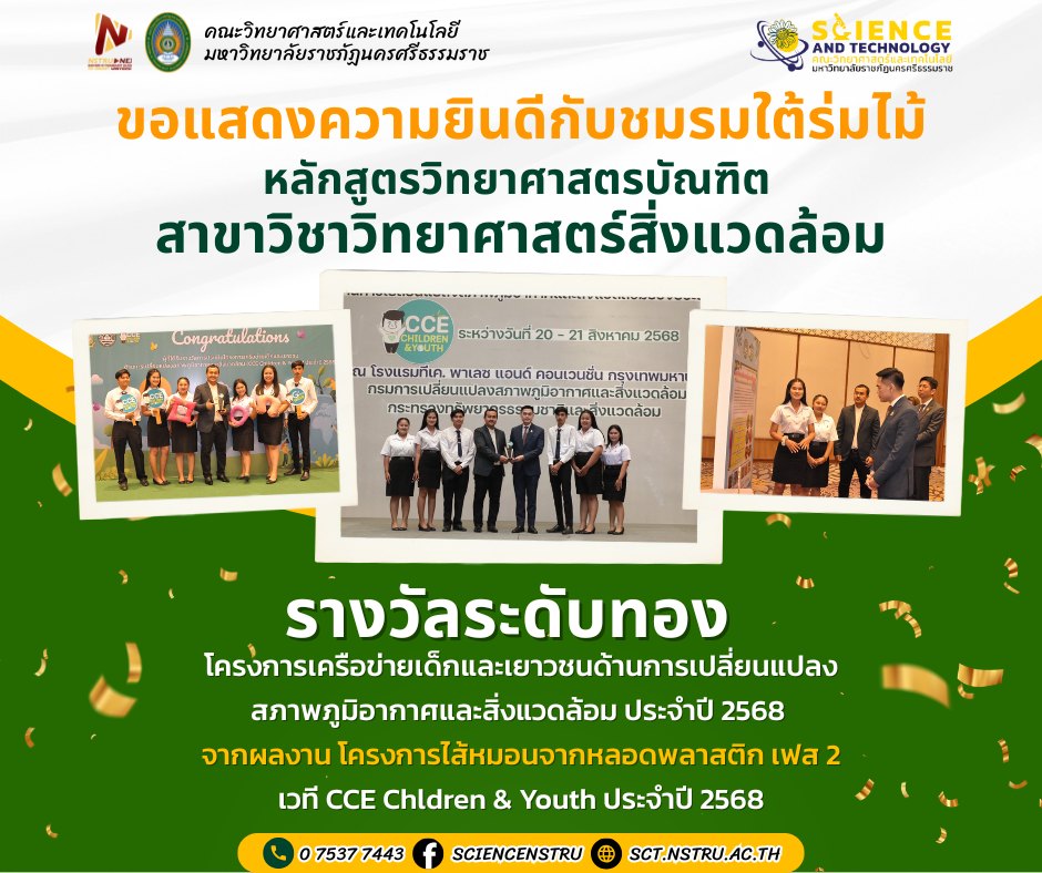 ขอแสดงความยินดีกับชมรมใต้ร่มไม้ หลักสูตรวิทยาศาสตรบัณฑิต สาขาวิชาวิทยาศาสตร์สิ่งแวดล้อม