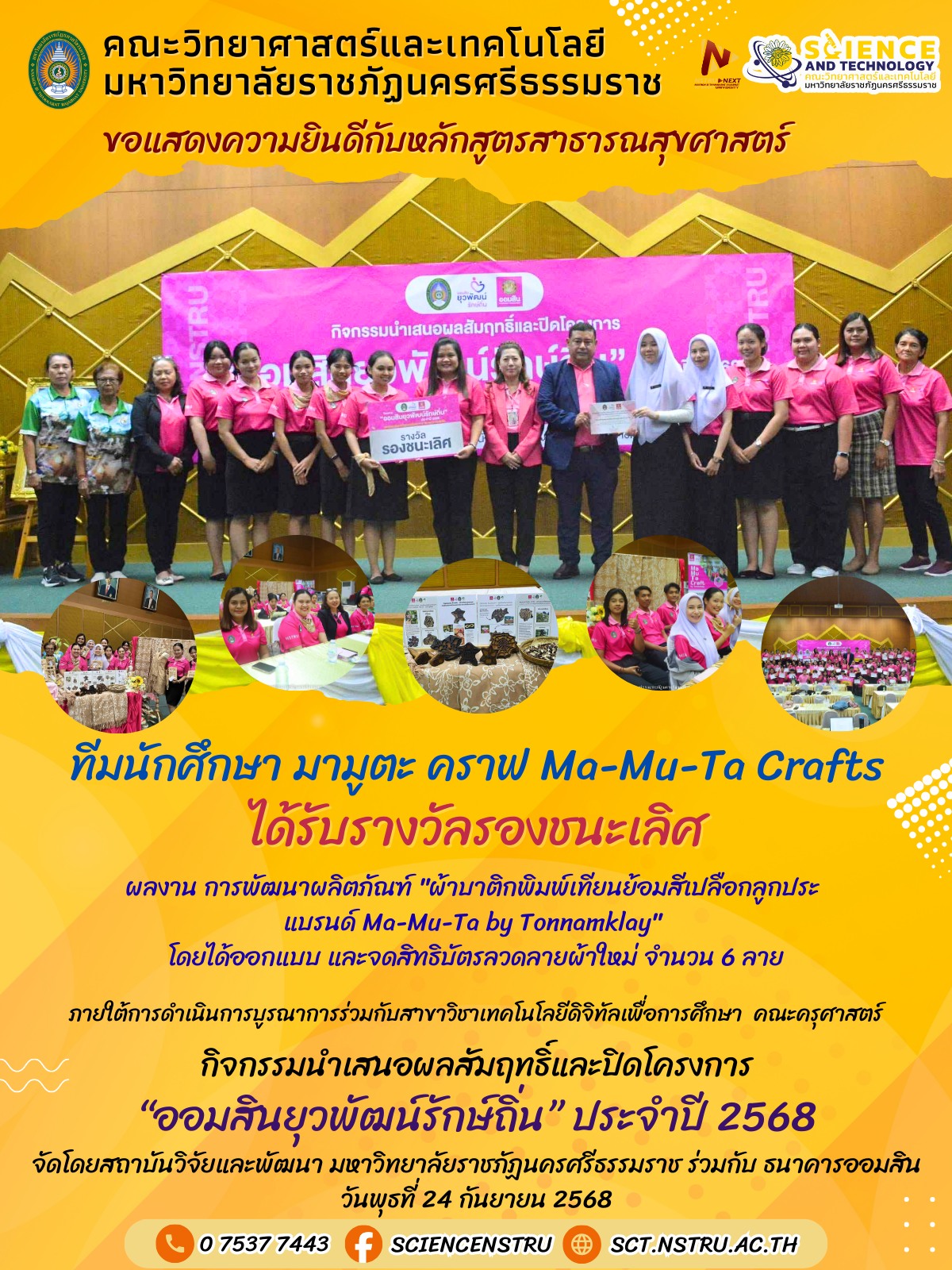 ขอแสดงความยินดีกับทีมนักศึกษา มามูตะ คราฟ Ma-Mu-Ta Crafts จากสาขาวิชาสาธารณสุขศาสตร์