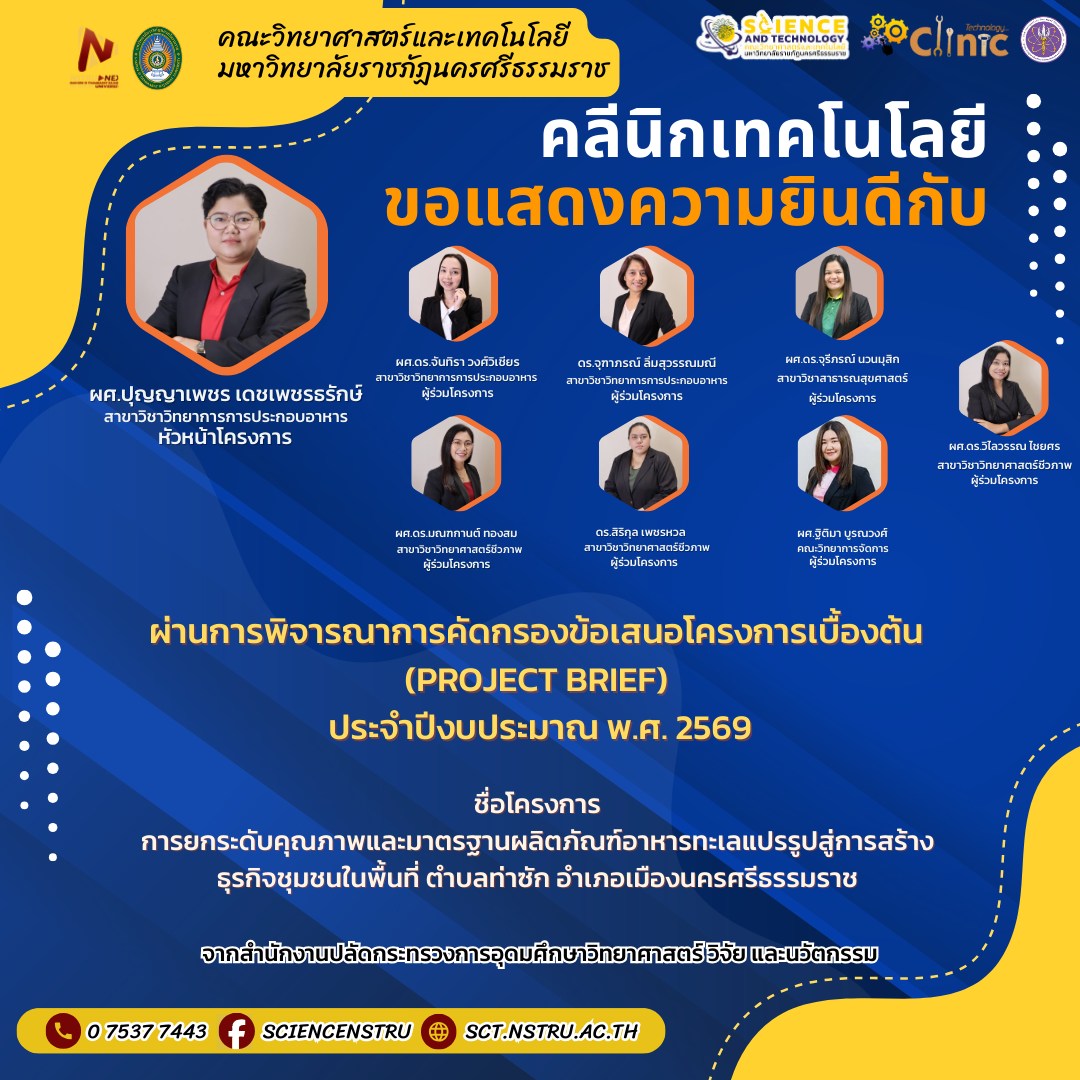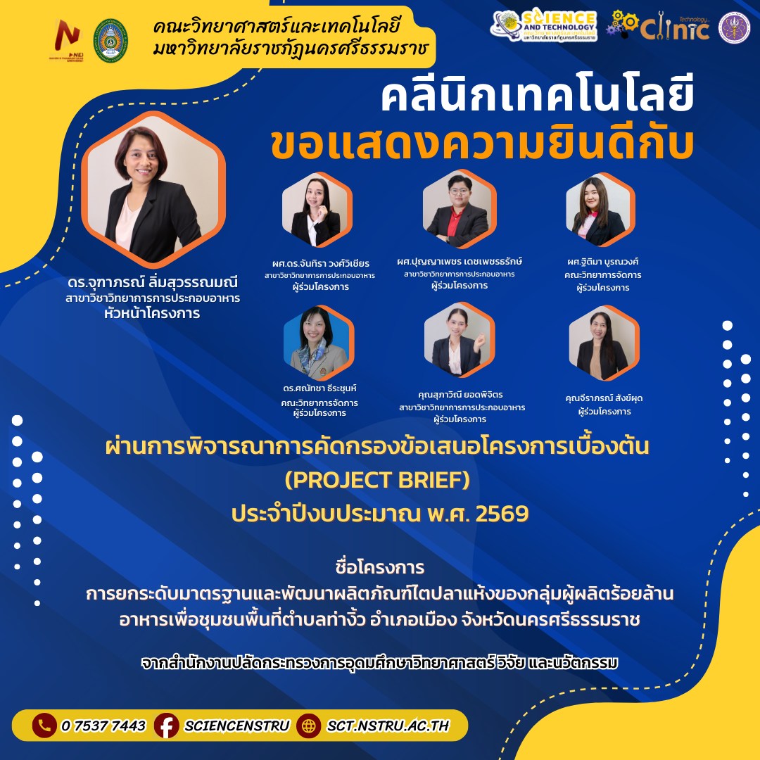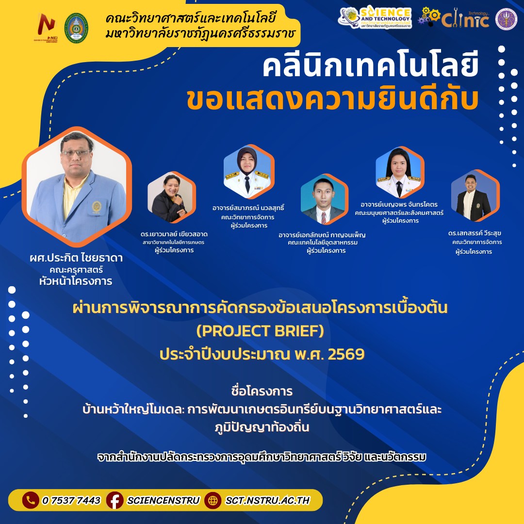 ขอแสดงความยินดีกับคณาจารย์และบุคลากร ผ่านการพิจารณาการคัดกรองข้อเสนอโครงการเบื้องต้น (Project brief) ประจำปีงบประมาณ พ.ศ. 2569
