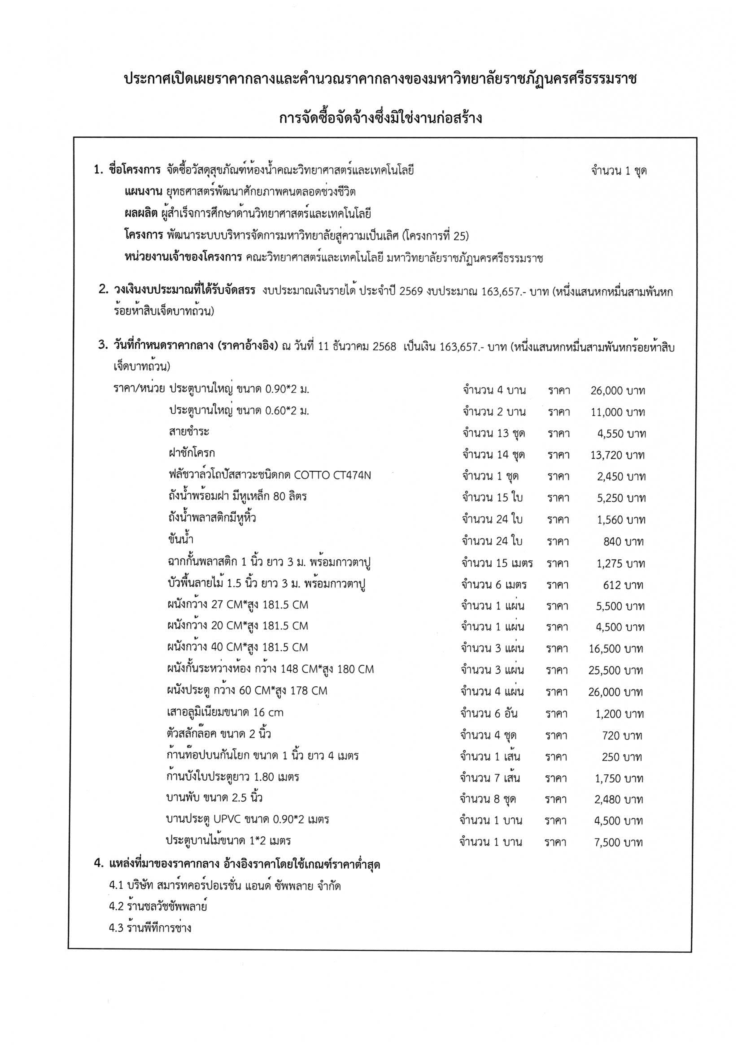 เปิดเผยราคากลาง จัดซื้อวัสดุสุขภัณฑ์ห้องน้ำคณะวิทยาศาสตร์และเทคโนโลยี จำนวน 1 ชุด