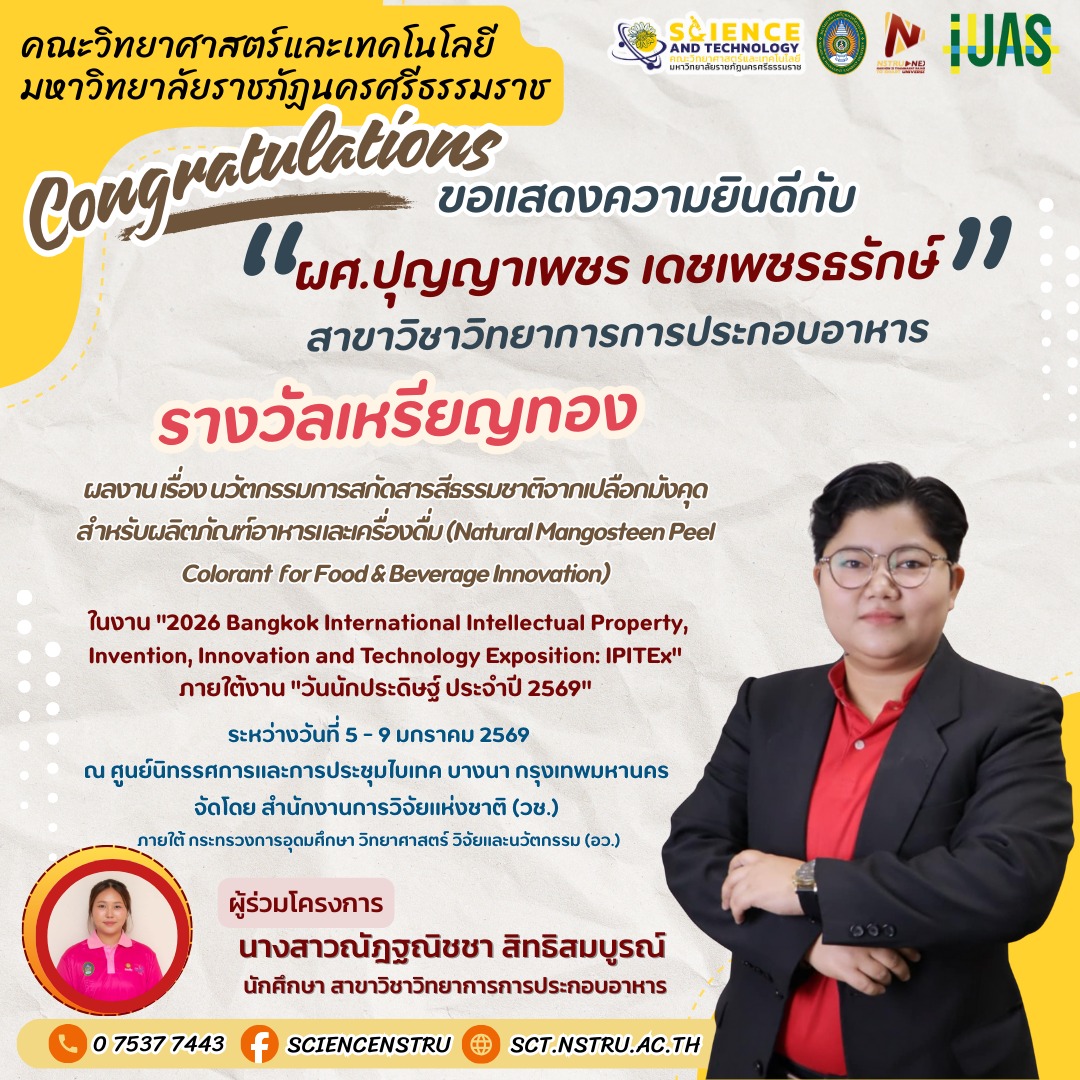 อาจารย์สาขาวิชาวิทยาการการประกอบอาหาร คว้า 1 เหรียญทอง 1 เหรียญเงิน