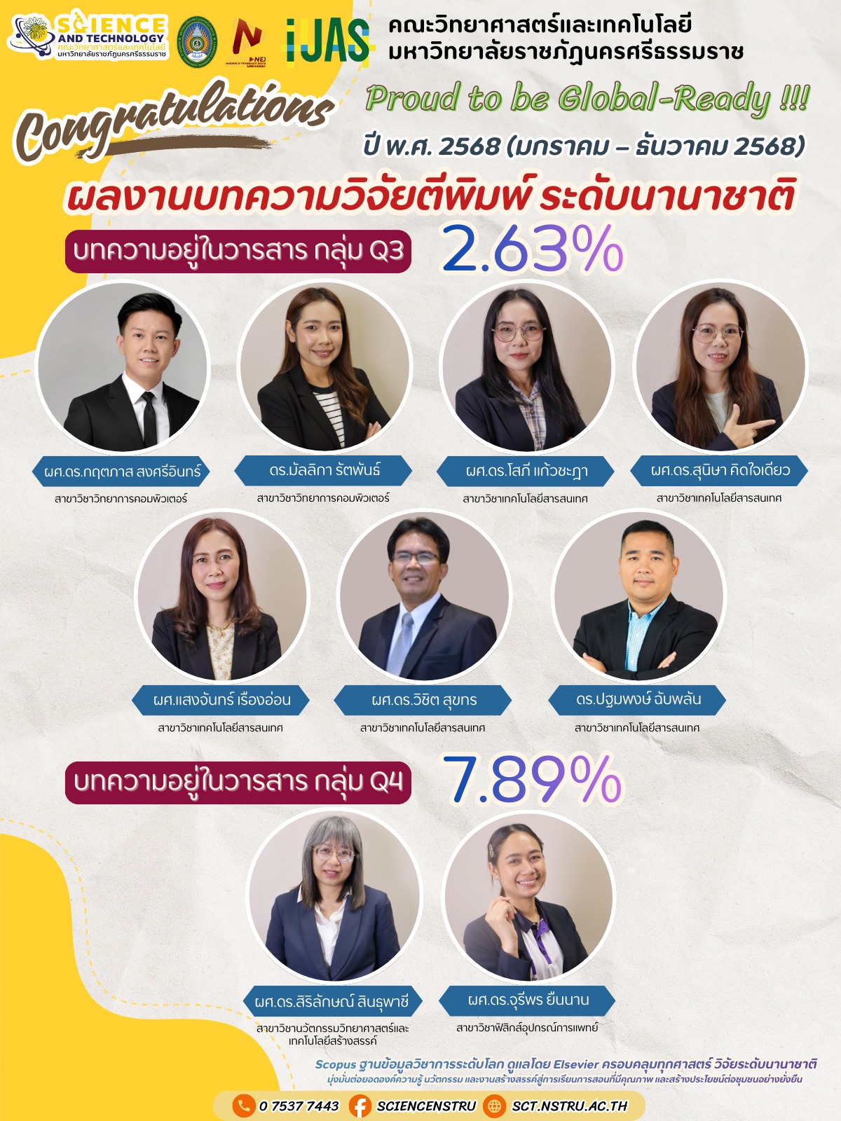 ทั้งนี้ Scopus เป็นฐานข้อมูลวิชาการระดับโลกที่อยู่ภายใต้การดูแลของ Elsevier ครอบคลุมผลงานวิจัยจากหลากหลายสาขาวิชา และเป็นที่ยอมรับอย่างกว้างขวางในระดับนานาชาติ