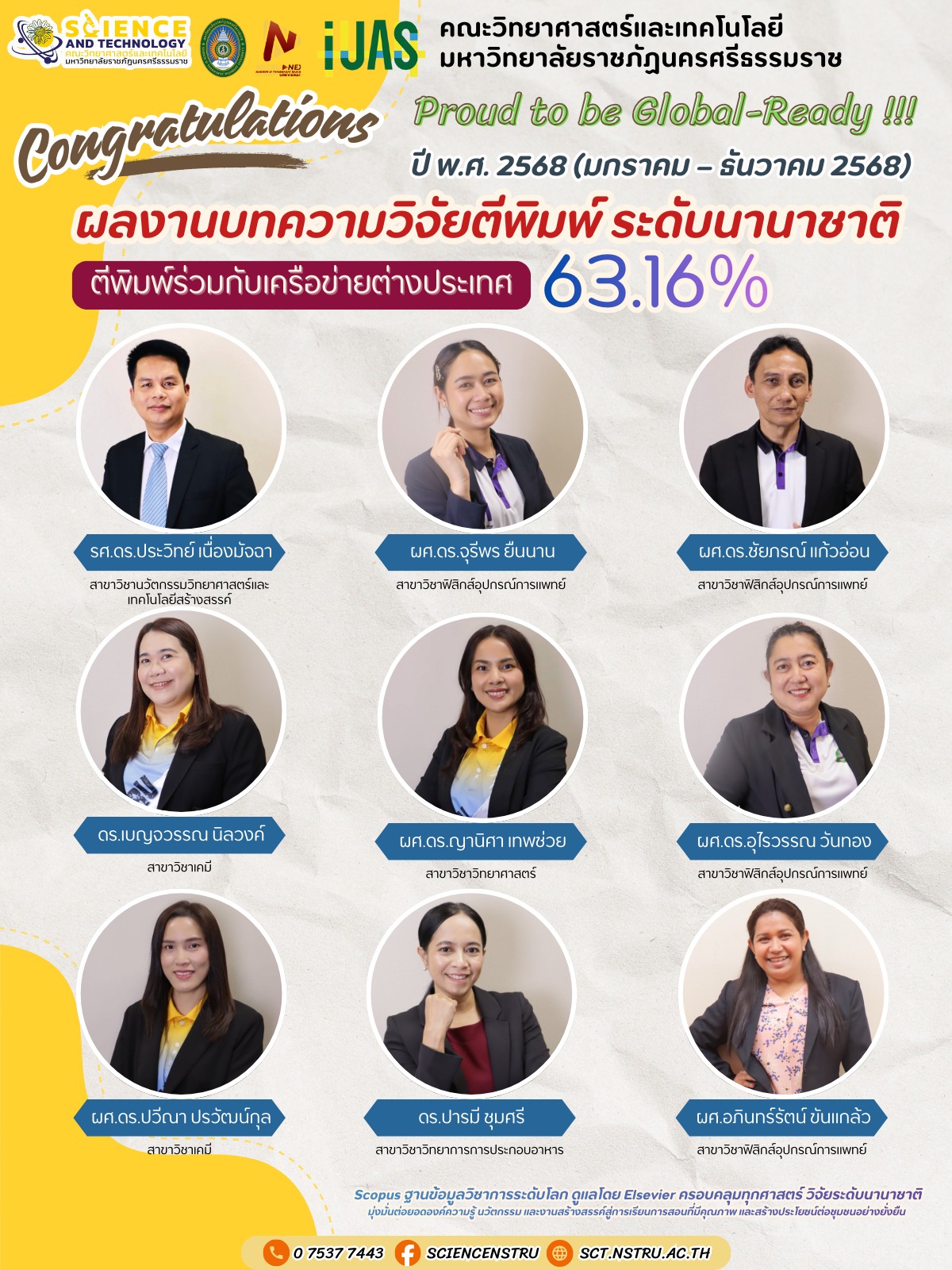 63.16% เป็นผลงานตีพิมพ์ร่วมกับเครือข่ายนักวิจัยต่างประเทศ