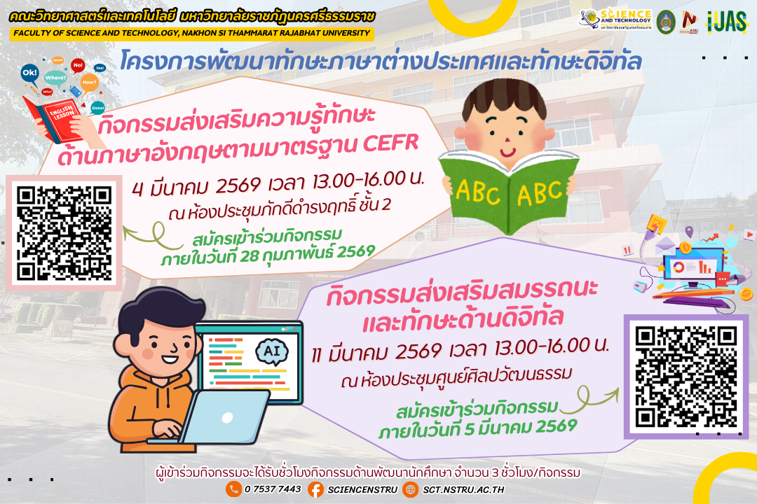 ขอเชิญ นักศึกษาชั้นปีที่ 2 (รหัส 67) เข้าร่วมโครงการพัฒนาทักษะภาษาต่างประเทศและทักษะดิจิทัล