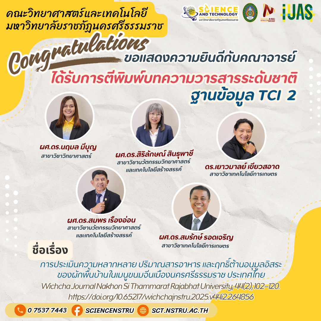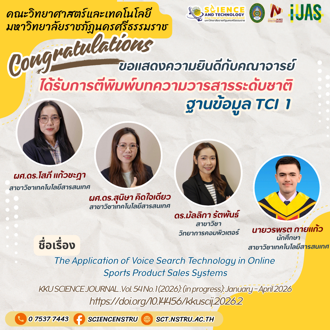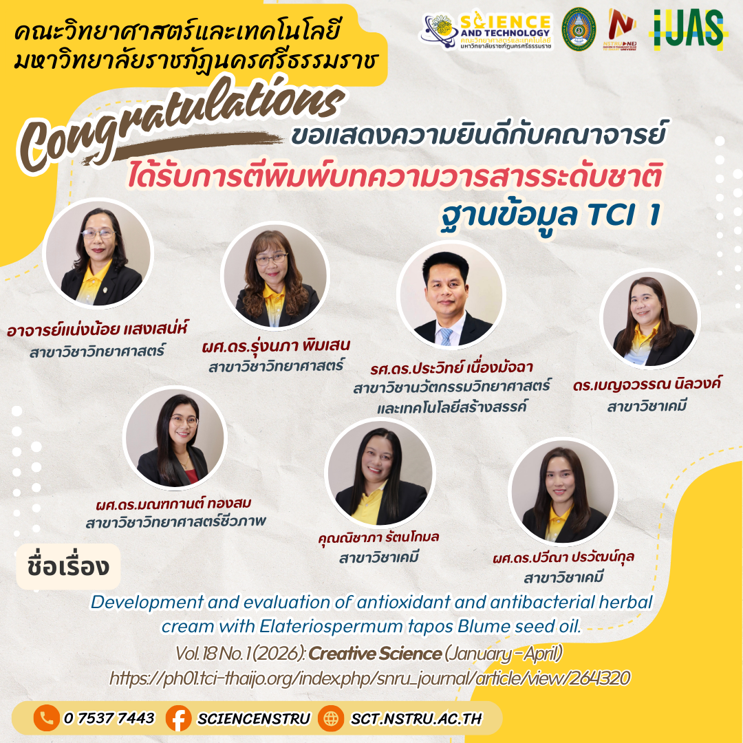 ขอแสดงความยินดีกับคณาจารย์ที่มีผลงานตีพิมพ์บทความในวารสารระดับนานาชาติและระดับชาติ จำนวน 4 ผลงาน