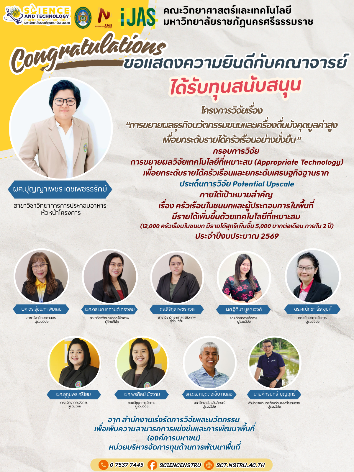 ได้รับทุนสนับสนุนโครงการวิจัยจาก สำนักงานเร่งรัดการวิจัยและนวัตกรรม