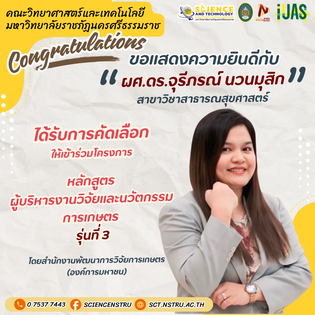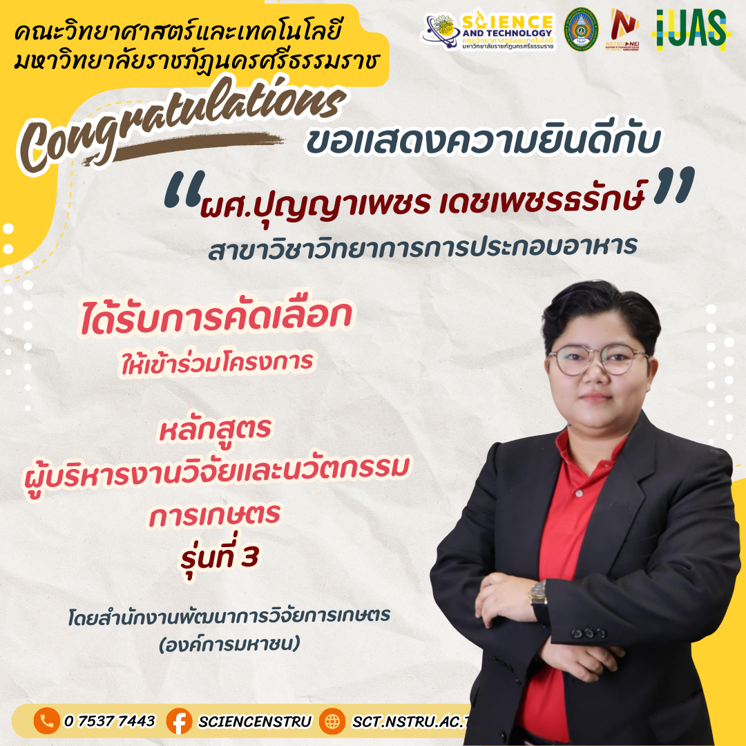 ขอแสดงความยินดีกับคณาจารย์ ได้รับการคัดเลือกให้เข้าร่วมโครงการหลักสูตรผู้บริหารงานวิจัยและนวัตกรรมการเกษตร รุ่นที่ 3