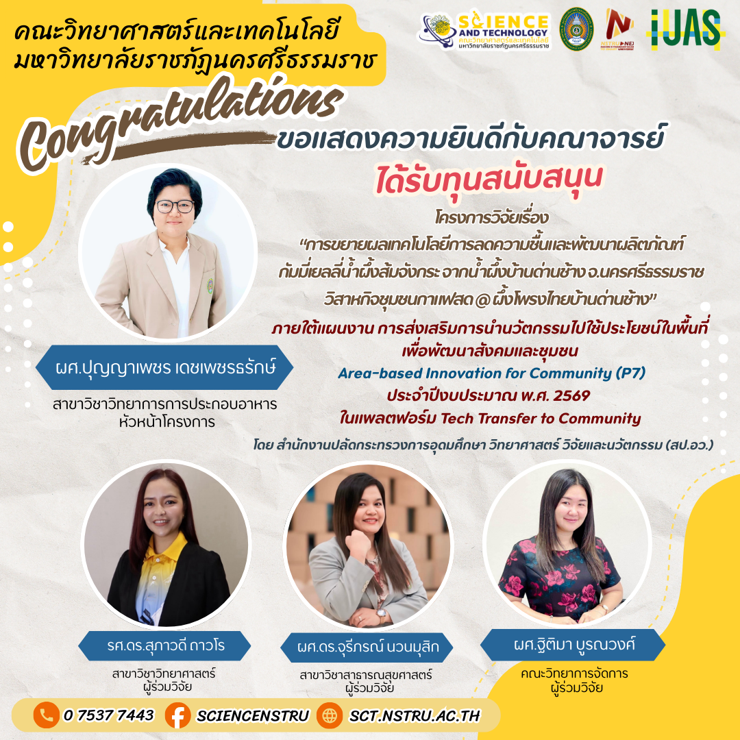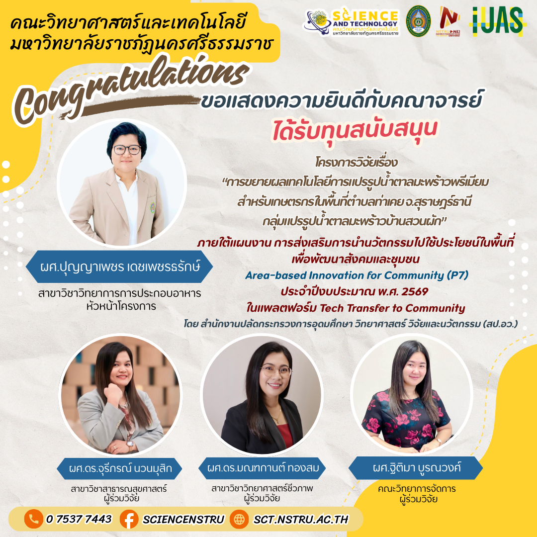 ขอแสดงความยินดีกับคณาจารย์ ได้รับทุนสนับสนุนโครงการวิจัย